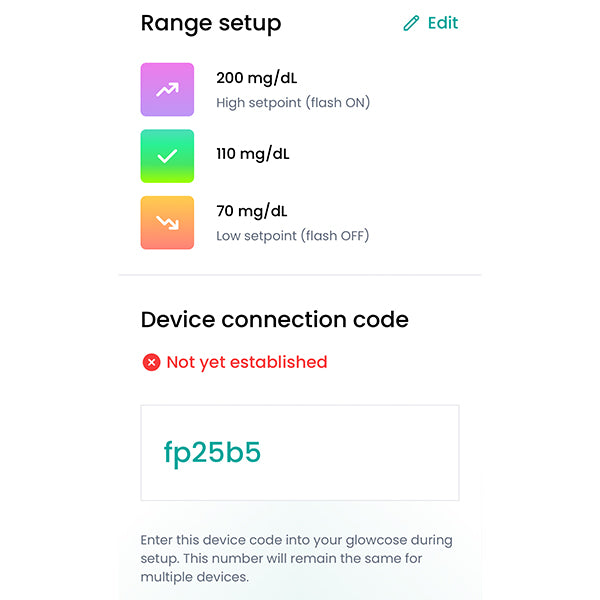 Remember, this code is unique to you and necessary to link your glowcose device with the glowcose web app. Also, one code works for all of your glowcose devices.