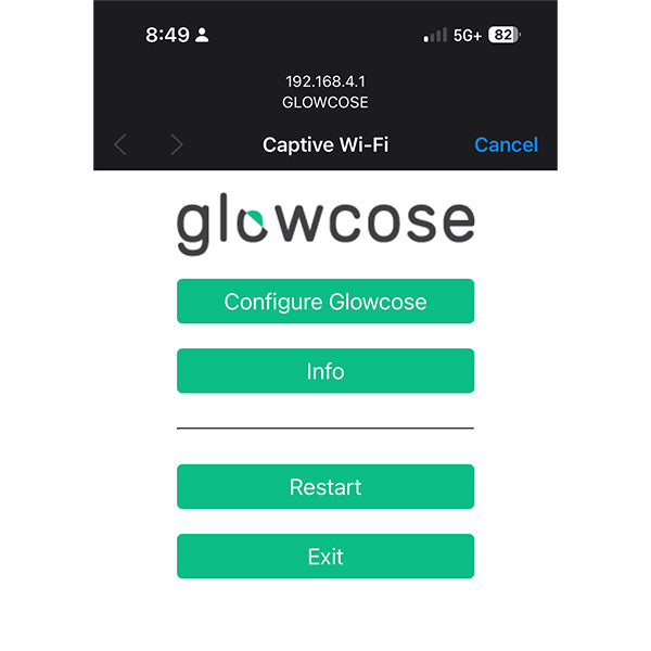 If the glowcose setup page doesn't automatically appear, simply open any web browser (like Chrome or Safari), and either visit glowcose.com or type 192.168.4.1 into the address bar.